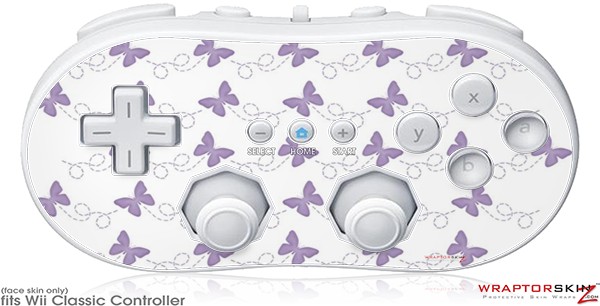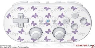 Wii Classic Controller Skin - Pastel Butterflies Purple on White