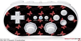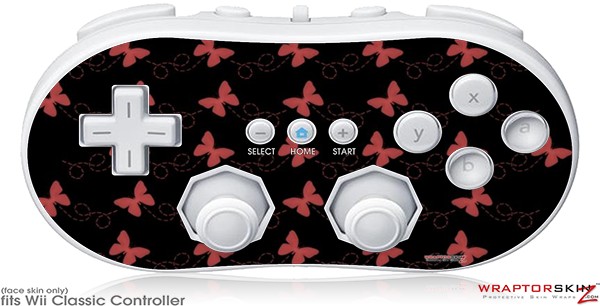 Wii Classic Controller Skin - Pastel Butterflies Red on Black