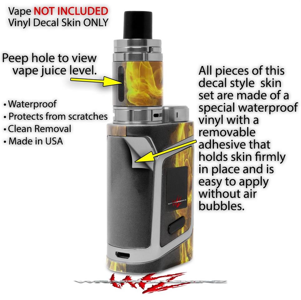 WraptorSkinz® skin wraps are printed using superb photo quality designs and vibrant colors printed with special fade resistant inks that last even in direct sun for years. WraptorSkinz are a composite of two layers of commercial grade materials. The bottom layer is a soft, flexible vinyl with a special removable adhesive that is easily positioned, applied without air bubbles. Next we print the bottom layer with UV protected, fade resistant inks that deliver superb photo quality designs in vibrant colors. Finally we bond a professional grade laminate over the entire skin adding a glossy protective finish. This product is not affiliated with or endorsed by the Smok brand.