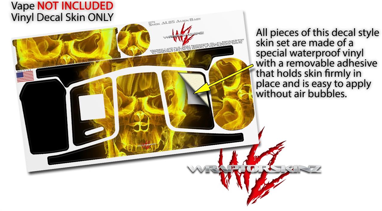 Skin Decal Wraps for Smok AL85 Alien Baby Flaming Fire Skull Yellow VAPE NOT INCLUDED