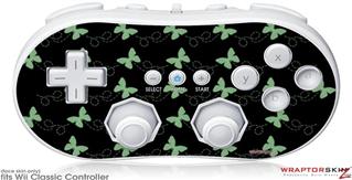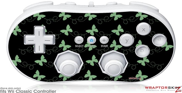 Wii Classic Controller Skin - Pastel Butterflies Green on Black