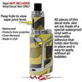 WraptorSkinz® skin wraps are printed using superb photo quality designs and vibrant colors printed with special fade resistant inks that last even in direct sun for years. WraptorSkinz are a composite of two layers of commercial grade materials. The bottom layer is a soft, flexible vinyl with a special removable adhesive that is easily positioned, applied without air bubbles. Next we print the bottom layer with UV protected, fade resistant inks that deliver superb photo quality designs in vibrant colors. Finally we bond a professional grade laminate over the entire skin adding a glossy protective finish. This product is not affiliated with or endorsed by the Smok brand.