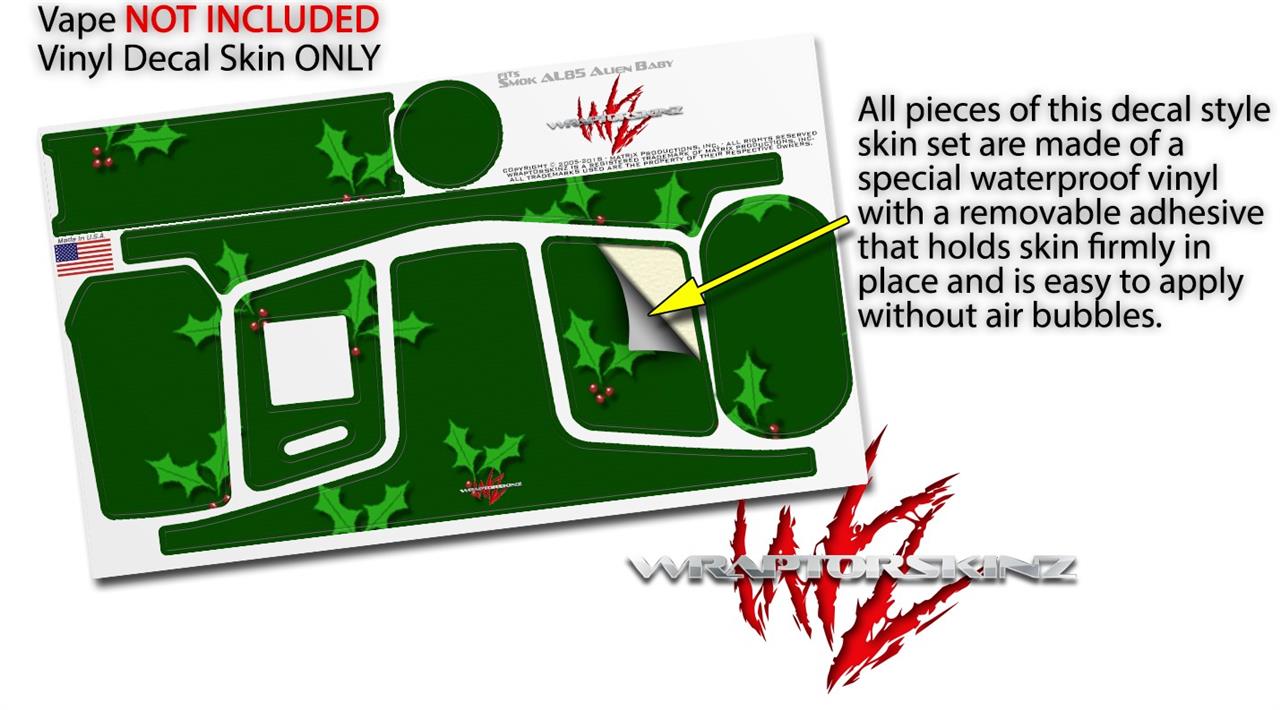 Skin Decal Wraps for Smok AL85 Alien Baby Christmas Holly Leaves on Green VAPE NOT INCLUDED