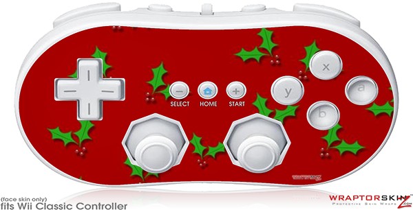 Wii Classic Controller Skin - Christmas Holly Leaves on Red