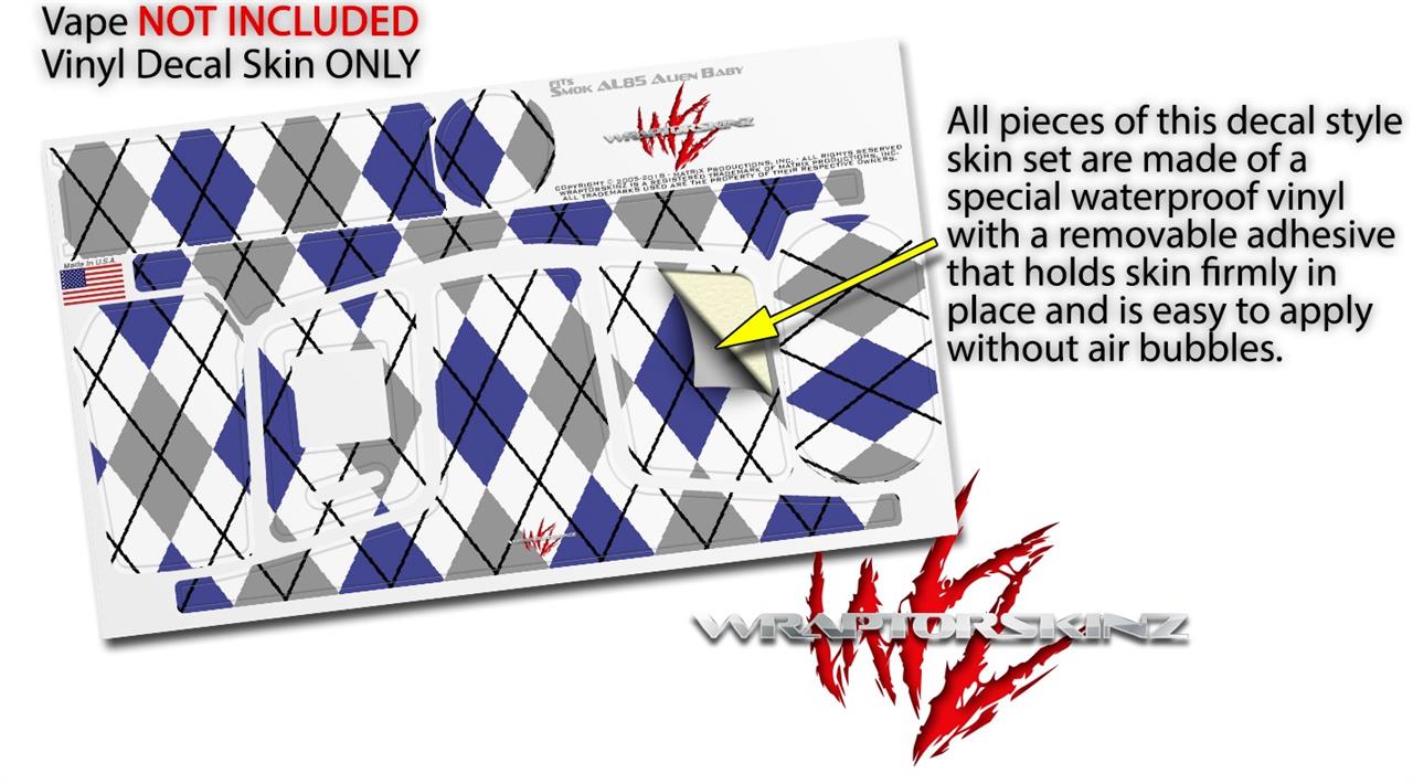 Skin Decal Wraps for Smok AL85 Alien Baby Argyle Blue and Gray VAPE NOT INCLUDED