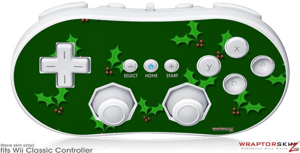 Wii Classic Controller Skin - Christmas Holly Leaves on Green
