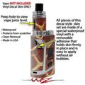 WraptorSkinz® skin wraps are printed using superb photo quality designs and vibrant colors printed with special fade resistant inks that last even in direct sun for years. WraptorSkinz are a composite of two layers of commercial grade materials. The bottom layer is a soft, flexible vinyl with a special removable adhesive that is easily positioned, applied without air bubbles. Next we print the bottom layer with UV protected, fade resistant inks that deliver superb photo quality designs in vibrant colors. Finally we bond a professional grade laminate over the entire skin adding a glossy protective finish. This product is not affiliated with or endorsed by the Smok brand.