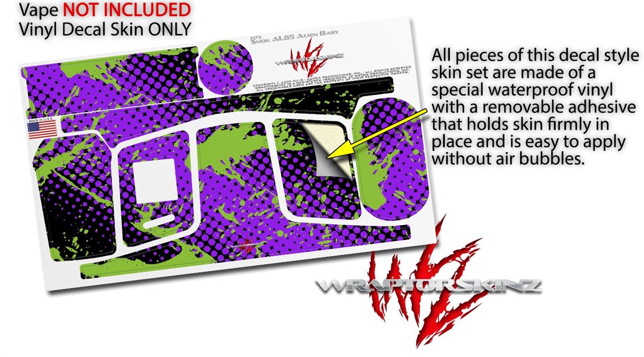 Skin Decal Wraps for Smok AL85 Alien Baby Halftone Splatter Green Purple VAPE NOT INCLUDED