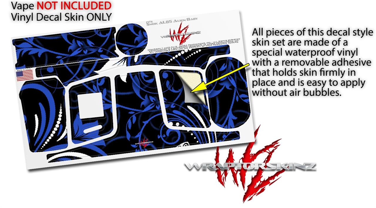 Skin Decal Wraps for Smok AL85 Alien Baby Twisted Garden Blue and White VAPE NOT INCLUDED