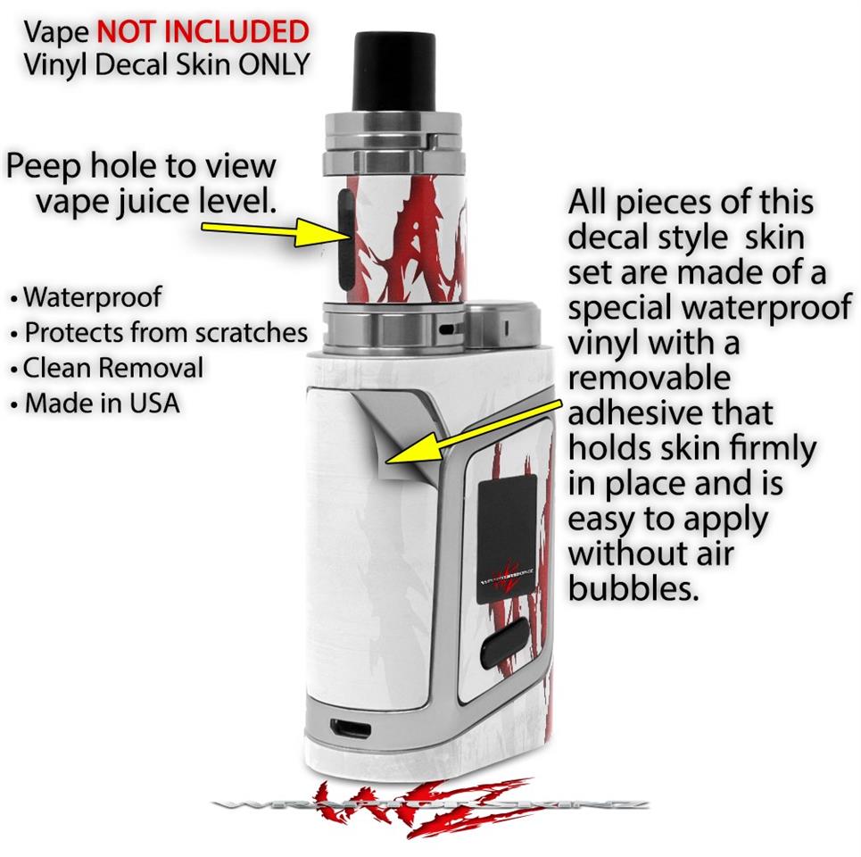 WraptorSkinz® skin wraps are printed using superb photo quality designs and vibrant colors printed with special fade resistant inks that last even in direct sun for years. WraptorSkinz are a composite of two layers of commercial grade materials. The bottom layer is a soft, flexible vinyl with a special removable adhesive that is easily positioned, applied without air bubbles. Next we print the bottom layer with UV protected, fade resistant inks that deliver superb photo quality designs in vibrant colors. Finally we bond a professional grade laminate over the entire skin adding a glossy protective finish. This product is not affiliated with or endorsed by the Smok brand.
