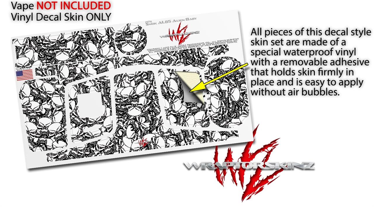 Skin Decal Wraps for Smok AL85 Alien Baby Scattered Skulls White VAPE NOT INCLUDED