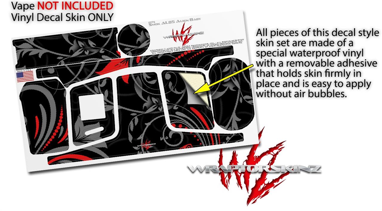 Skin Decal Wraps for Smok AL85 Alien Baby Twisted Garden Gray and Red VAPE NOT INCLUDED