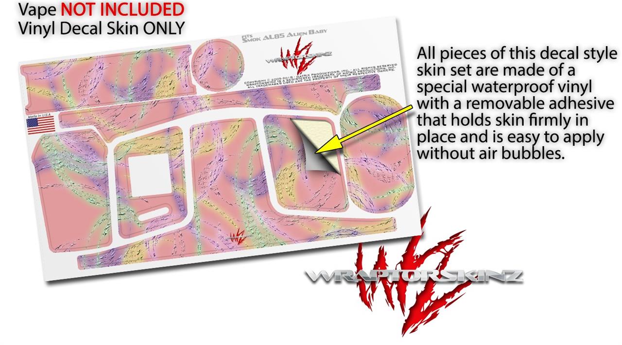 WraptorSkinz® skin wraps are printed using superb photo quality designs and vibrant colors printed with special fade resistant inks that last even in direct sun for years. WraptorSkinz are a composite of two layers of commercial grade materials. The bottom layer is a soft, flexible vinyl with a special removable adhesive that is easily positioned, applied without air bubbles. Next we print the bottom layer with UV protected, fade resistant inks that deliver superb photo quality designs in vibrant colors. Finally we bond a professional grade laminate over the entire skin adding a glossy protective finish. This product is not affiliated with or endorsed by the Smok brand.