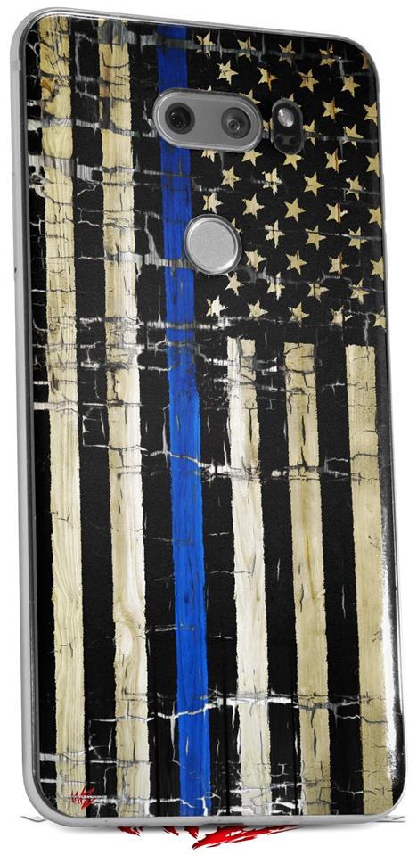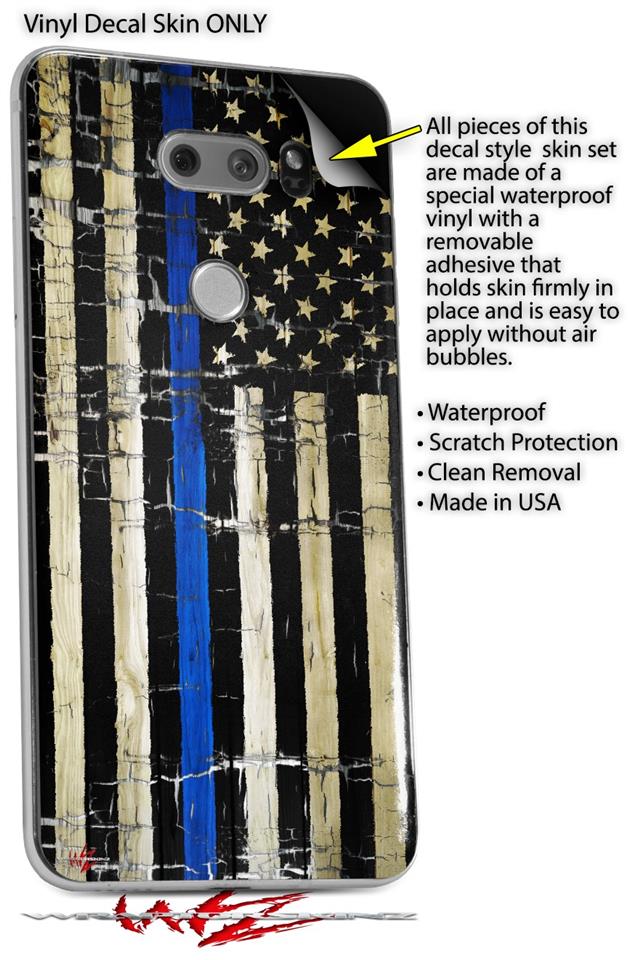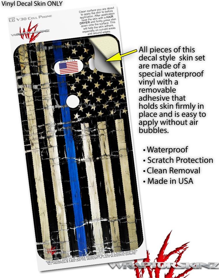 WraptorSkinz Skin Decal Wrap compatible with LG V30 Painted Faded Cracked Blue Line Stripe USA American Flag