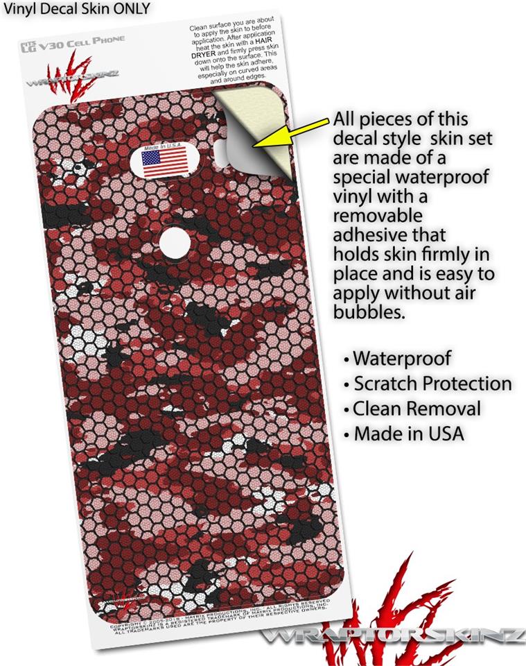 WraptorSkinz Skin Decal Wrap compatible with LG V30 HEX Mesh Camo 01 Red