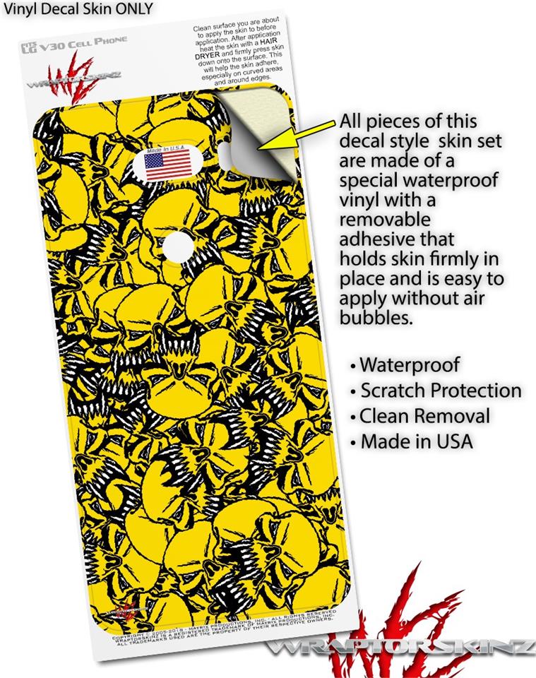 WraptorSkinz Skin Decal Wrap compatible with LG V30 Scattered Skulls Yellow