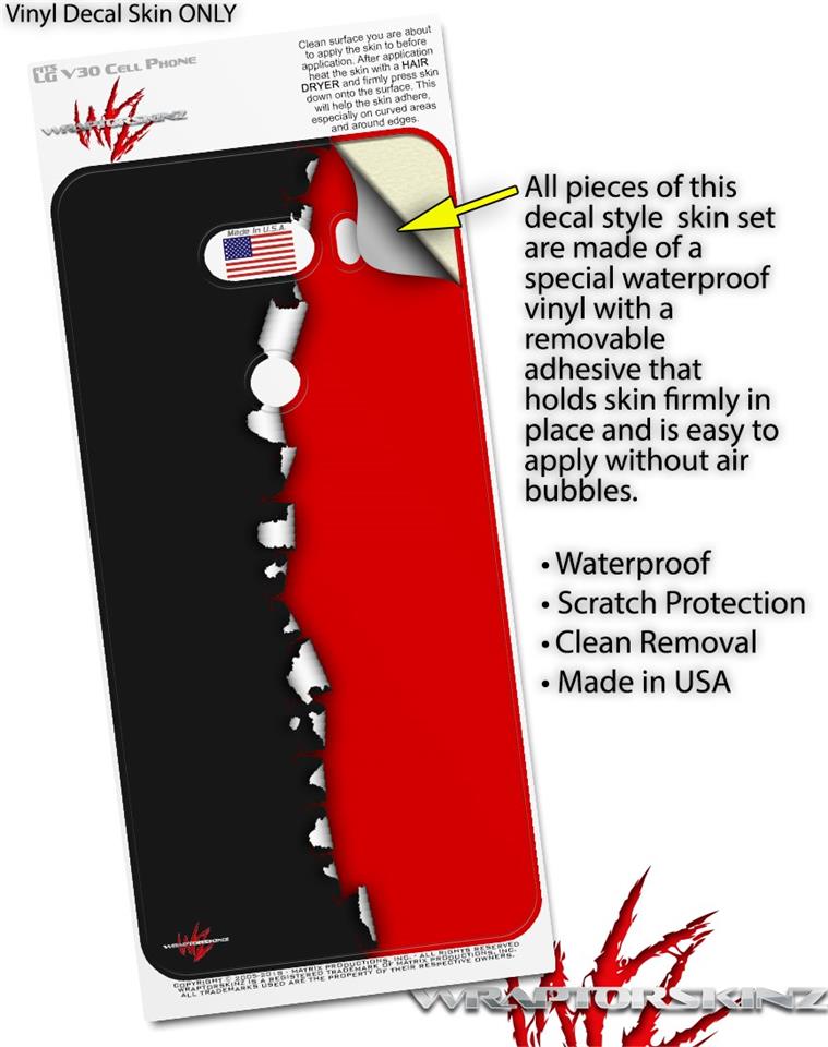 WraptorSkinz Skin Decal Wrap compatible with LG V30 Ripped Colors Black Red