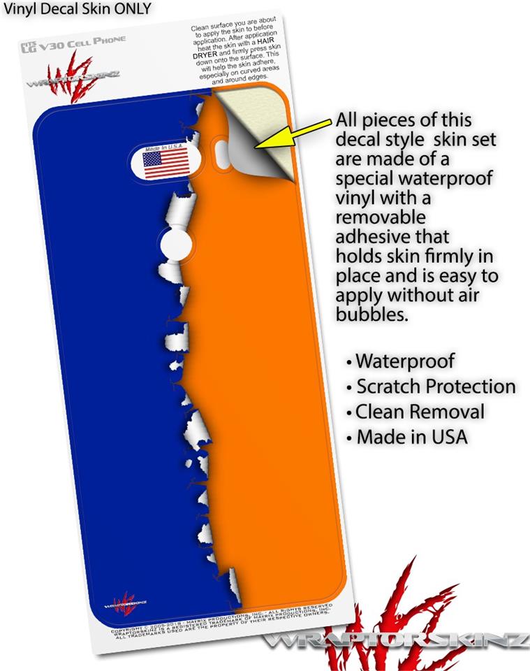 WraptorSkinz Skin Decal Wrap compatible with LG V30 Ripped Colors Blue Orange