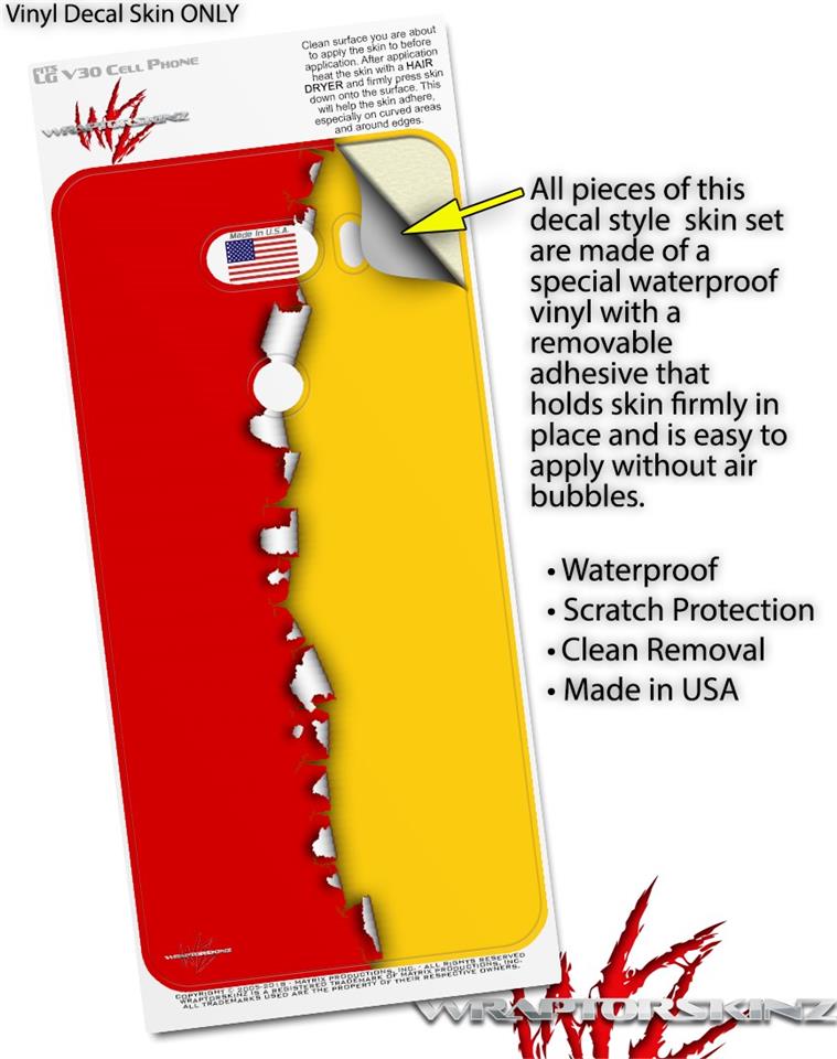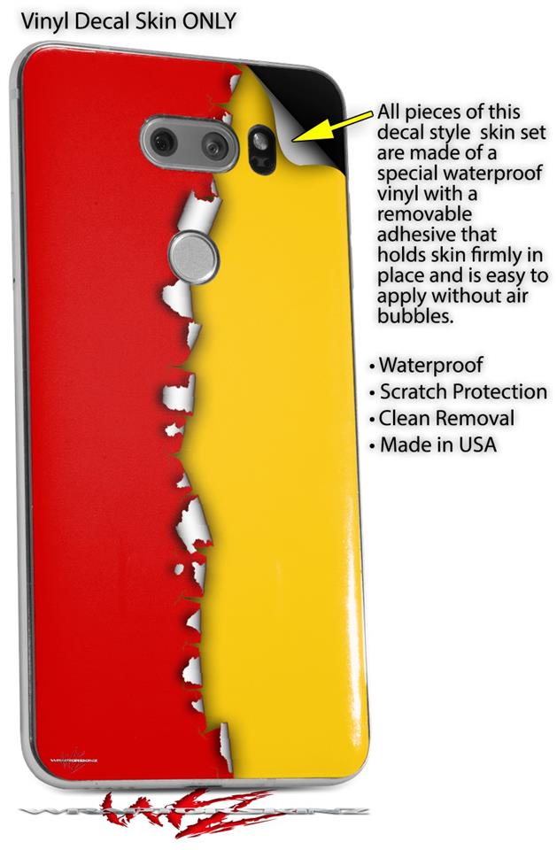 WraptorSkinz Skin Decal Wrap compatible with LG V30 Ripped Colors Red Yellow