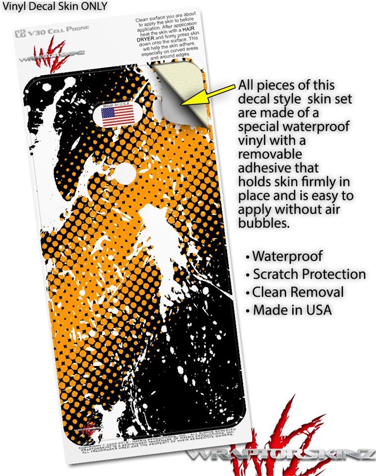 WraptorSkinz Skin Decal Wrap compatible with LG V30 Halftone Splatter White Orange