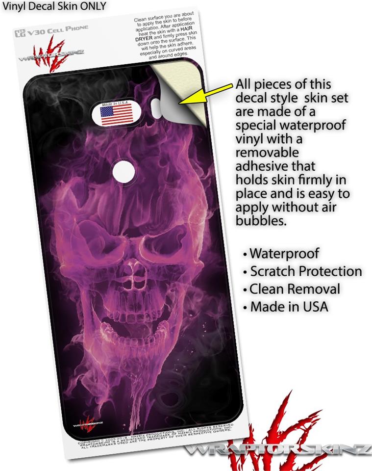 WraptorSkinz Skin Decal Wrap compatible with LG V30 Flaming Fire Skull Hot Pink Fuchsia