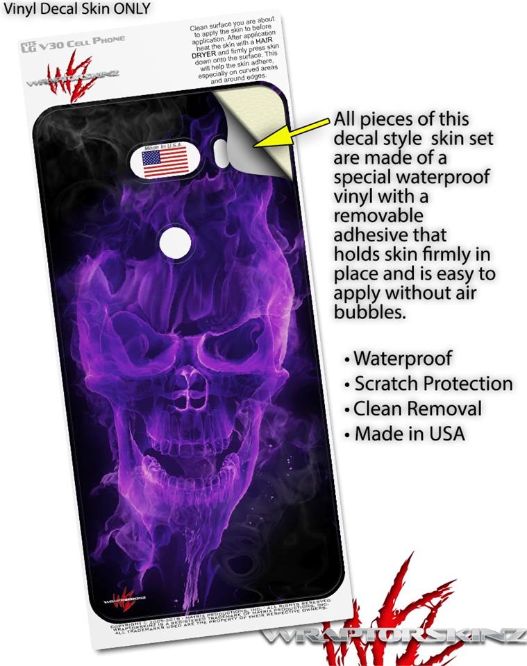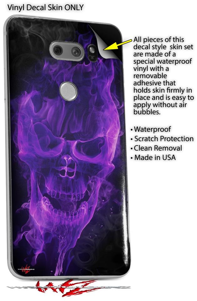 WraptorSkinz Skin Decal Wrap compatible with LG V30 Flaming Fire Skull Purple