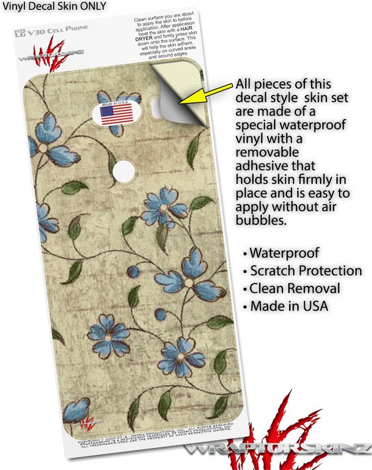 WraptorSkinz Skin Decal Wrap compatible with LG V30 Flowers and Berries Blue