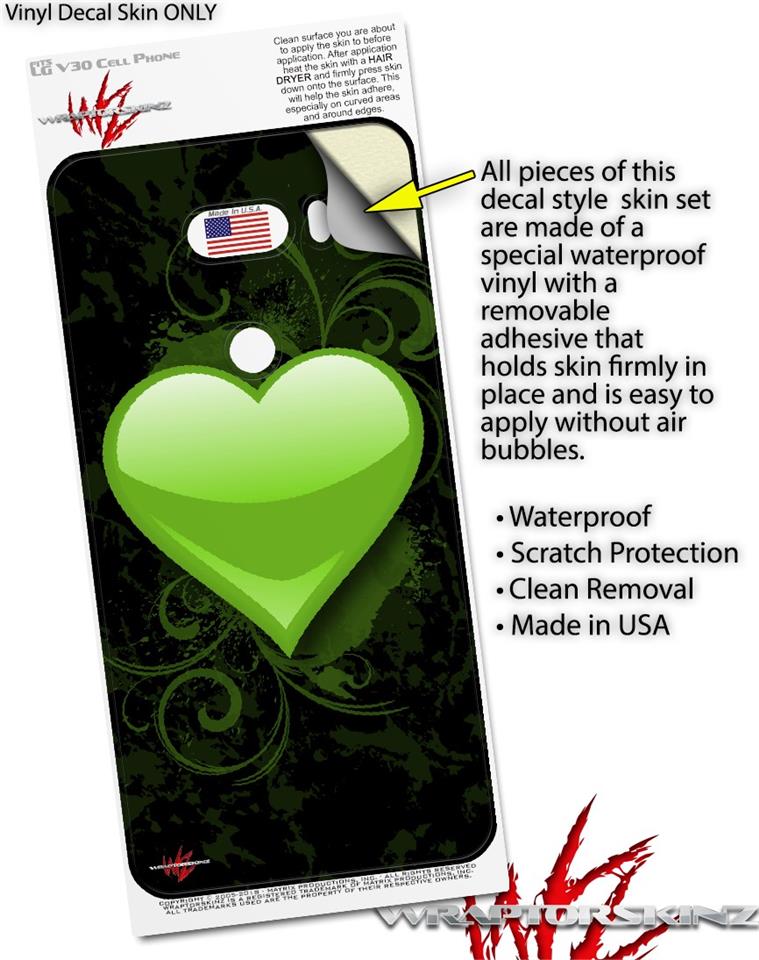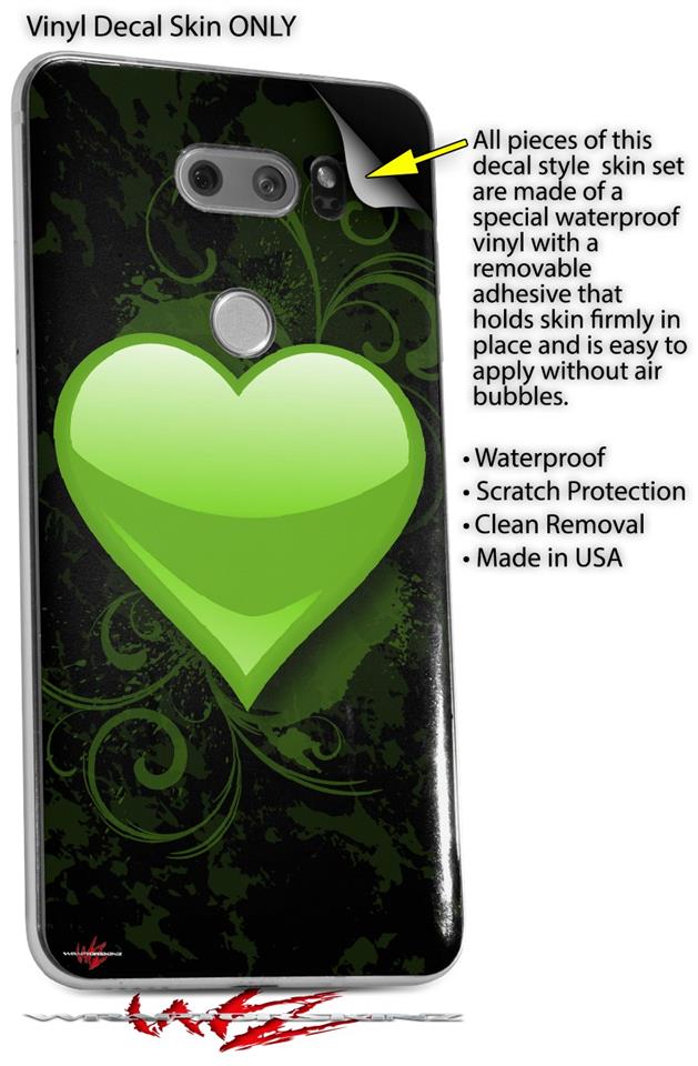WraptorSkinz Skin Decal Wrap compatible with LG V30 Glass Heart Grunge Green