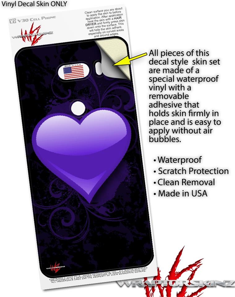 WraptorSkinz Skin Decal Wrap compatible with LG V30 Glass Heart Grunge Purple