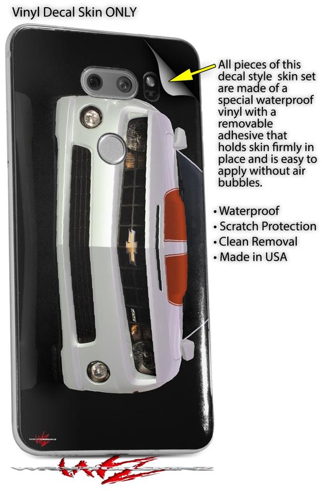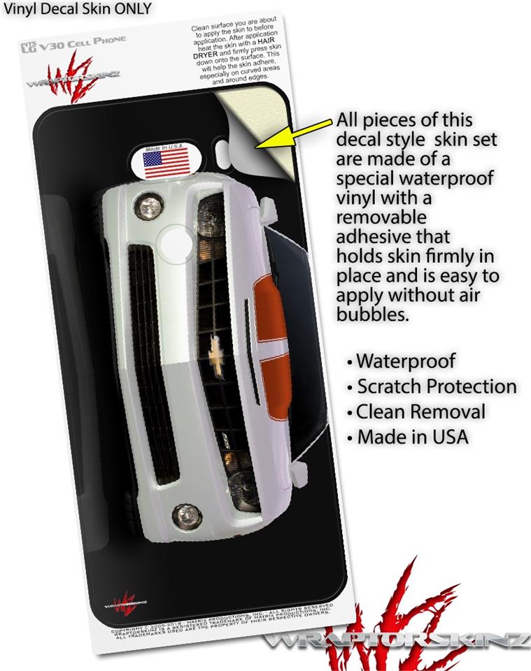 WraptorSkinz Skin Decal Wrap compatible with LG V30 2010 Chevy Camaro White - Orange Stripes on Black