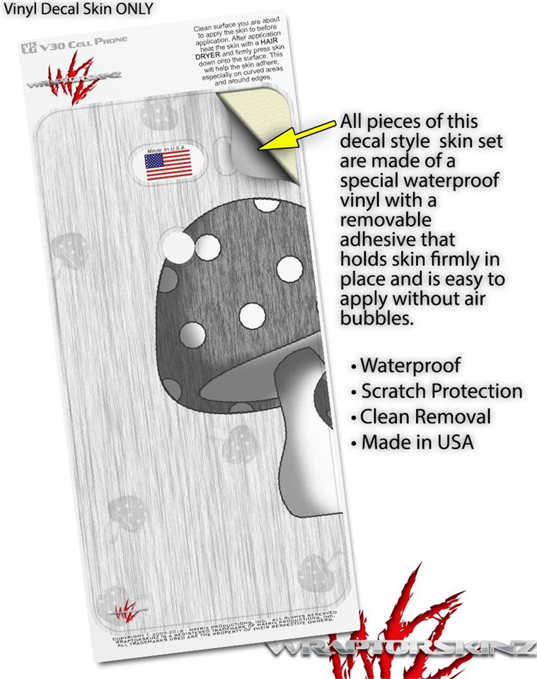 WraptorSkinz Skin Decal Wrap compatible with LG V30 Mushrooms Gray