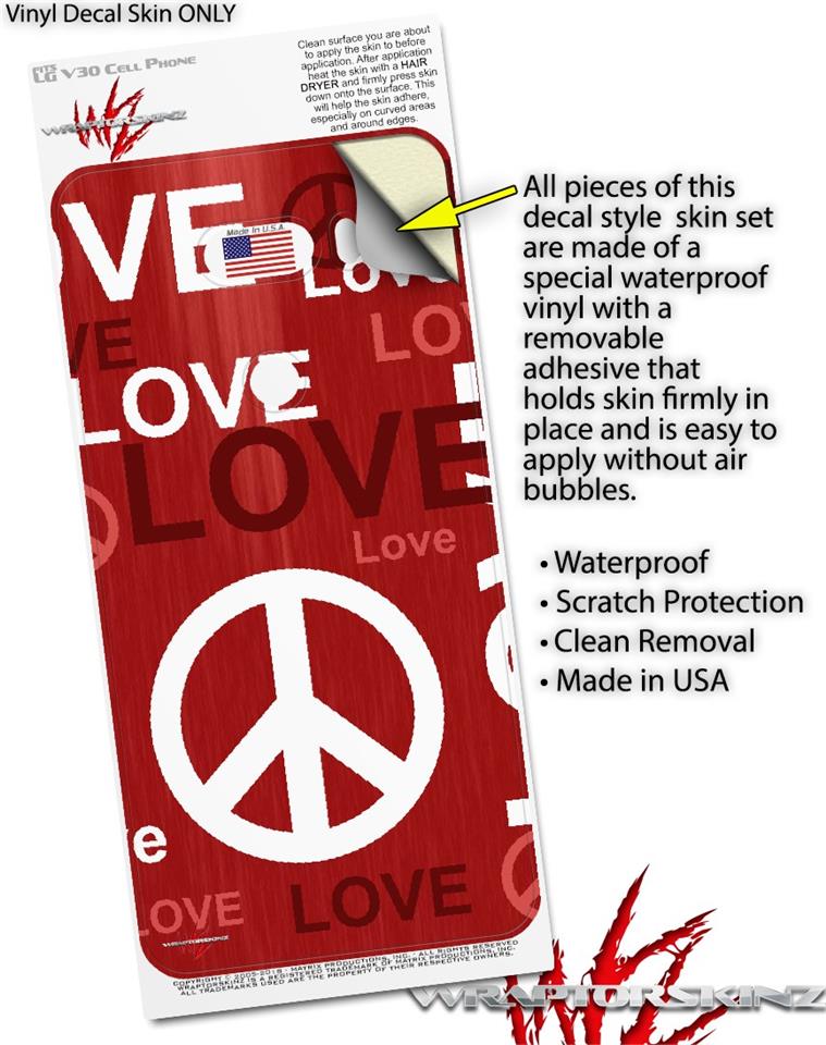 WraptorSkinz Skin Decal Wrap compatible with LG V30 Love and Peace Red