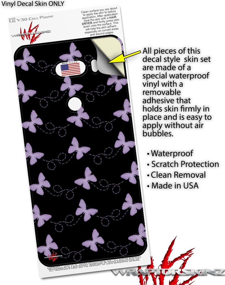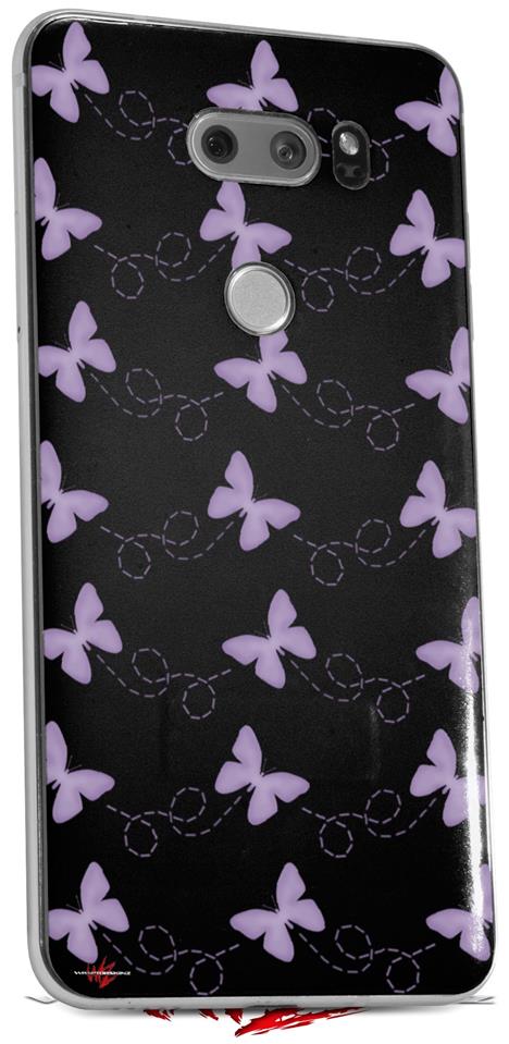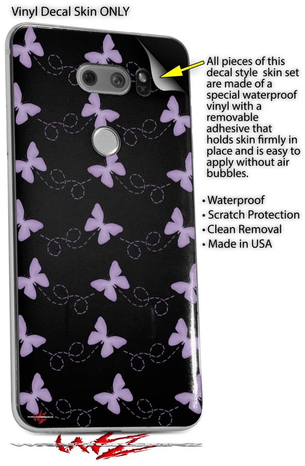 WraptorSkinz Skin Decal Wrap compatible with LG V30 Pastel Butterflies Purple on Black