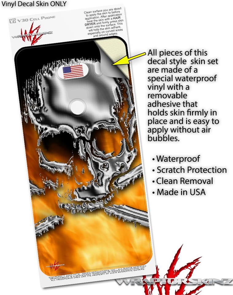 WraptorSkinz Skin Decal Wrap compatible with LG V30 Chrome Skull on Fire