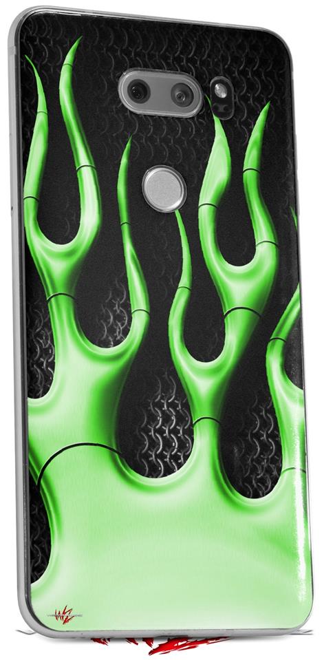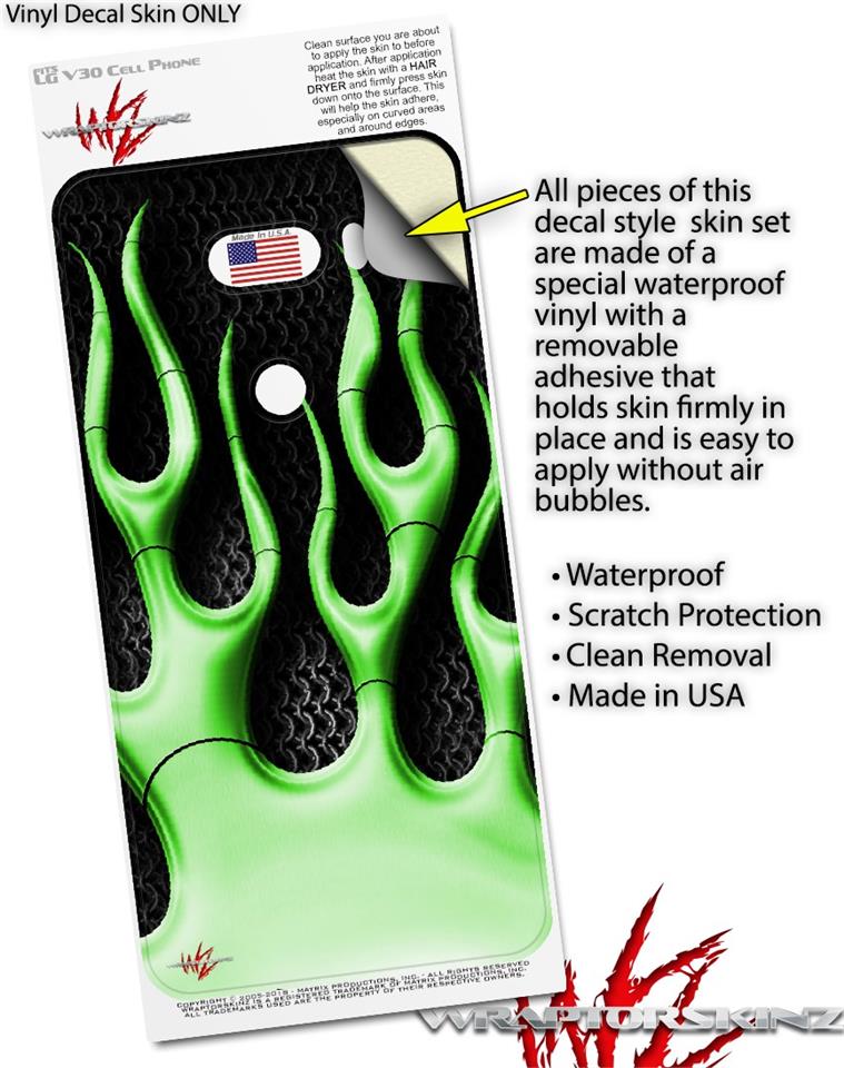 WraptorSkinz Skin Decal Wrap compatible with LG V30 Metal Flames Green