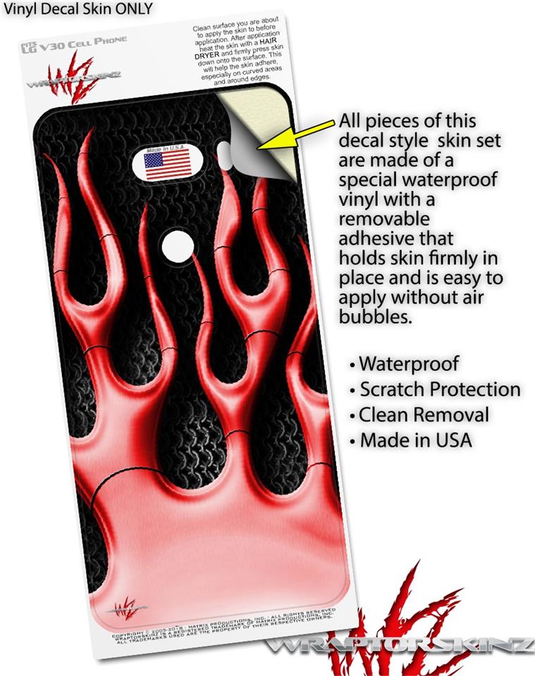 WraptorSkinz Skin Decal Wrap compatible with LG V30 Metal Flames Red