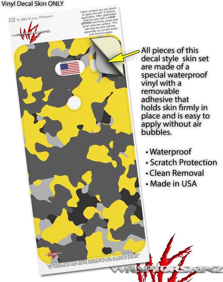 WraptorSkinz Skin Decal Wrap compatible with LG V30 WraptorCamo Old School Camouflage Camo Yellow