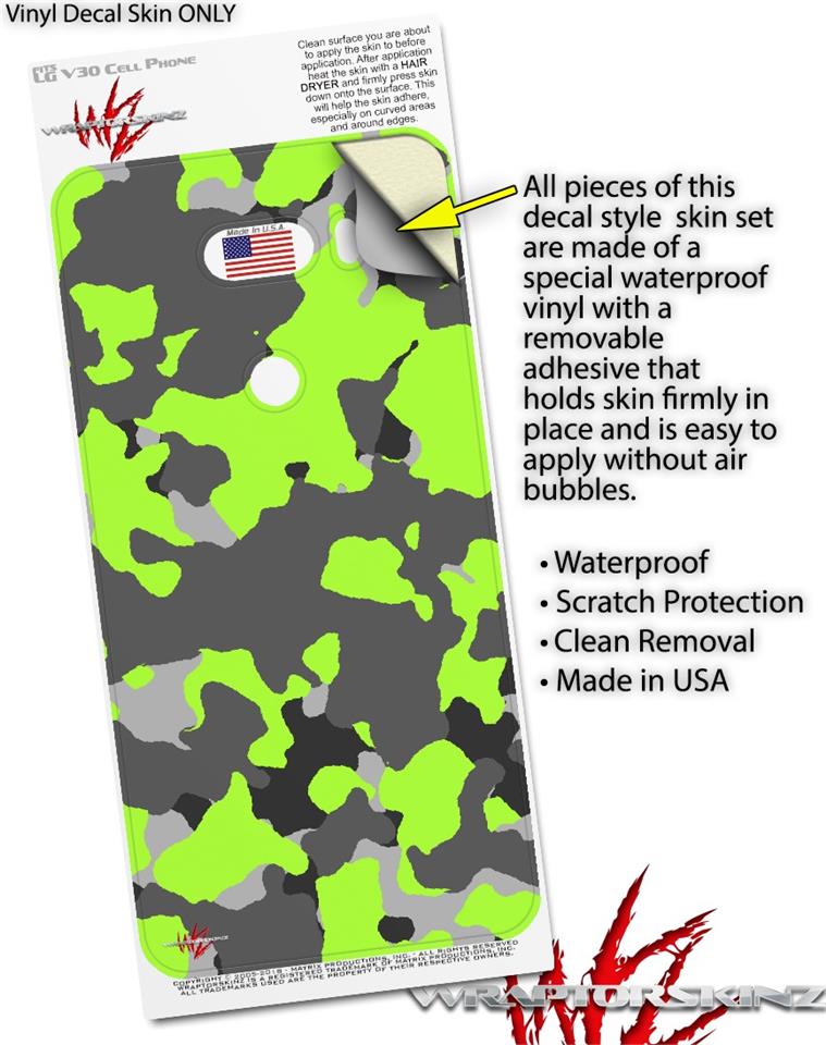 WraptorSkinz Skin Decal Wrap compatible with LG V30 WraptorCamo Old School Camouflage Camo Lime Green