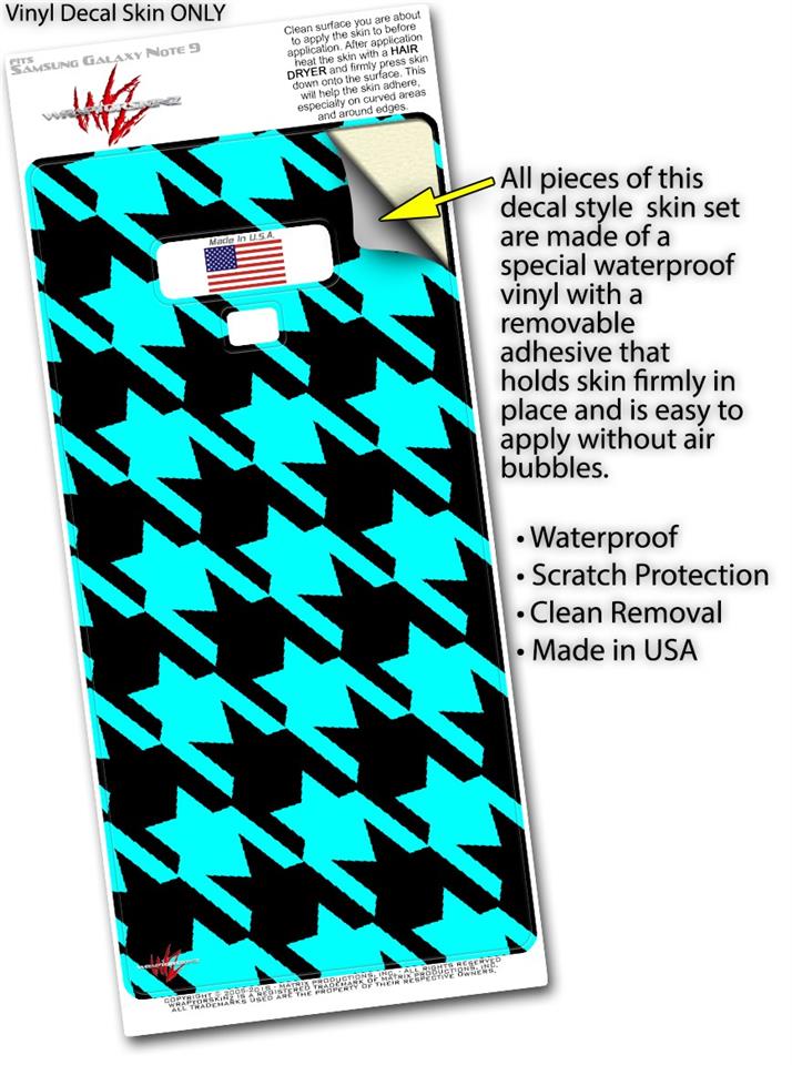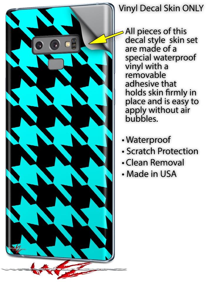 Decal style Skin Wrap compatible with Samsung Galaxy Note 9 Houndstooth Neon Teal on Black