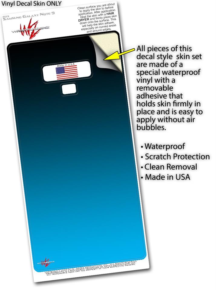 Decal style Skin Wrap compatible with Samsung Galaxy Note 9 Smooth Fades Neon Blue Black