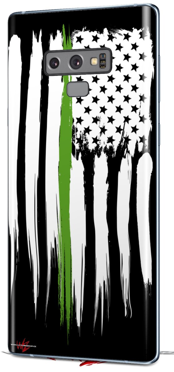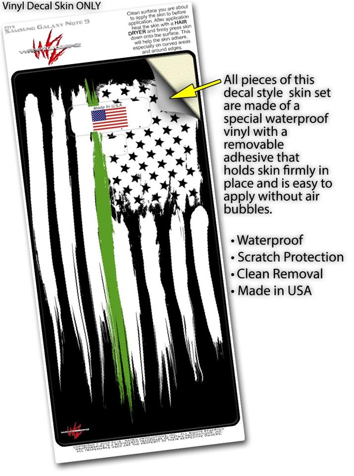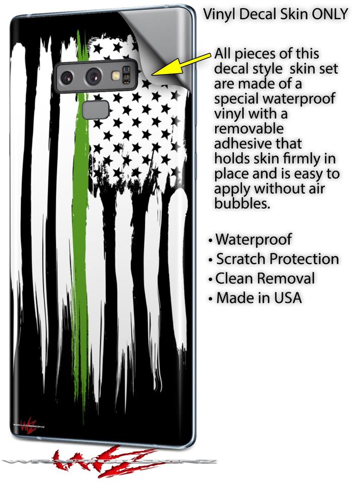 Decal style Skin Wrap compatible with Samsung Galaxy Note 9 Yeti Colster Brushed USA American Flag Green Line