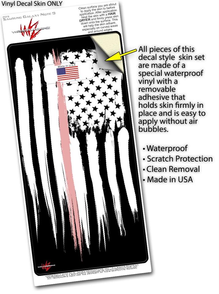 Decal style Skin Wrap compatible with Samsung Galaxy Note 9 Yeti Colster Brushed USA American Flag Pink Line