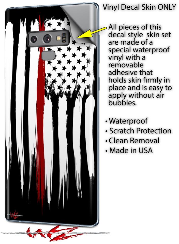 Decal style Skin Wrap compatible with Samsung Galaxy Note 9 Yeti Colster Brushed USA American Flag Red Line