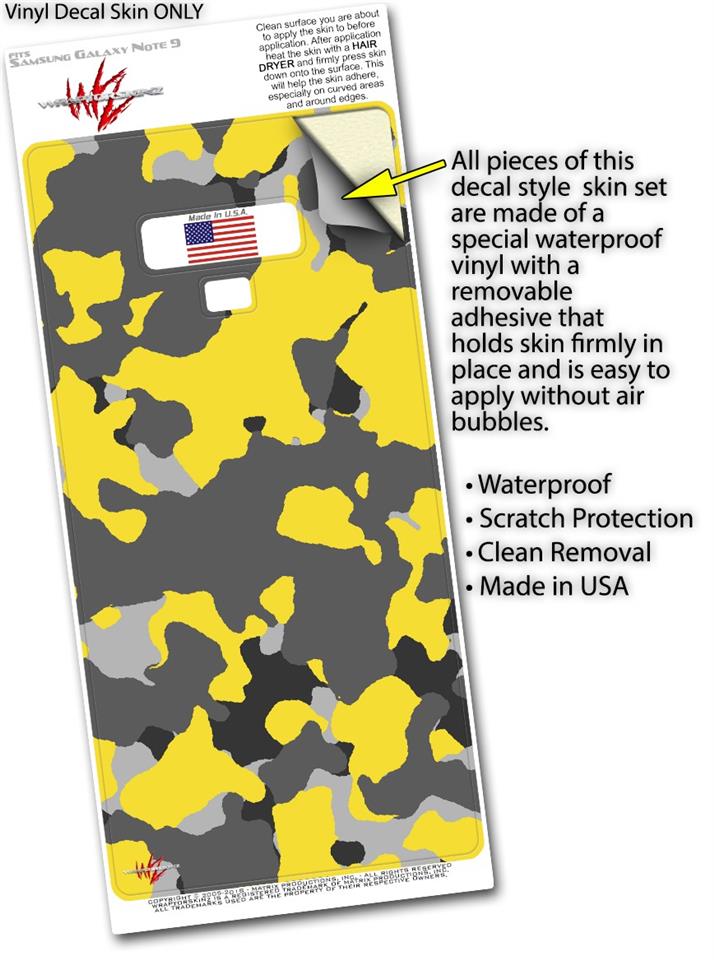 Decal style Skin Wrap compatible with Samsung Galaxy Note 9 WraptorCamo Old School Camouflage Camo Yellow