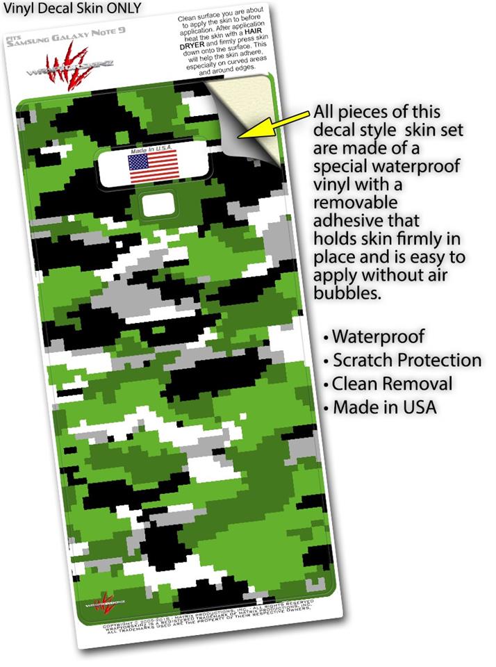 Decal style Skin Wrap compatible with Samsung Galaxy Note 9 WraptorCamo Digital Camo Green