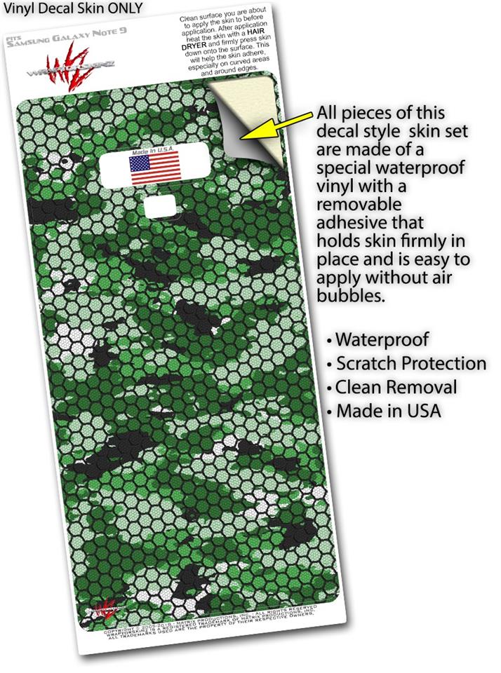 Decal style Skin Wrap compatible with Samsung Galaxy Note 9 HEX Mesh Camo 01 Green