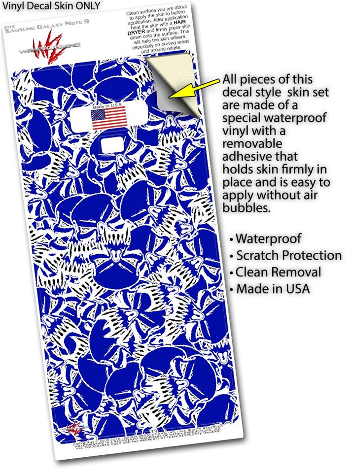 Decal style Skin Wrap compatible with Samsung Galaxy Note 9 Scattered Skulls Royal Blue