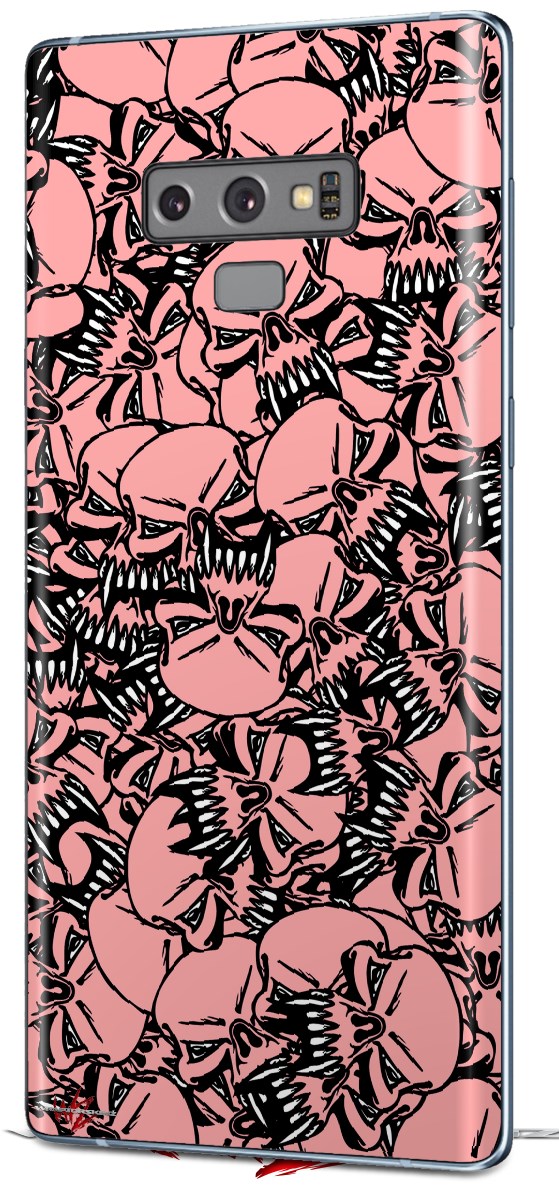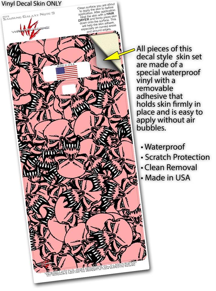 Decal style Skin Wrap compatible with Samsung Galaxy Note 9 Scattered Skulls Pink