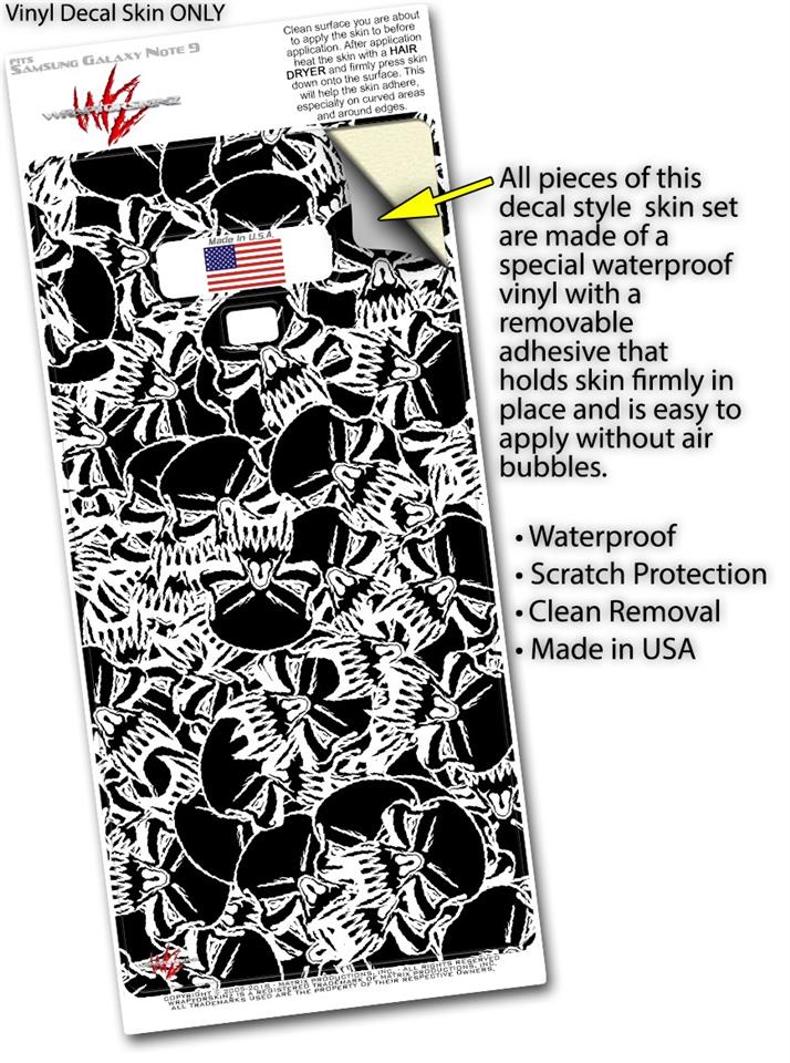 Decal style Skin Wrap compatible with Samsung Galaxy Note 9 Scattered Skulls Black