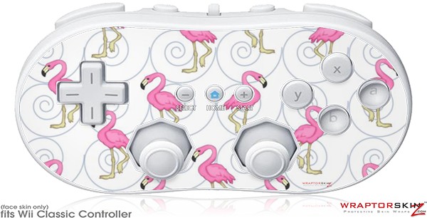 Wii Classic Controller Skin - Flamingos on White